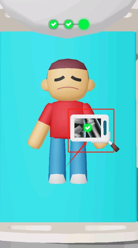 1在X光检查界面,轻点X光按钮,为红衣小孩进行检查,检查结束后可获取金币奖励。
