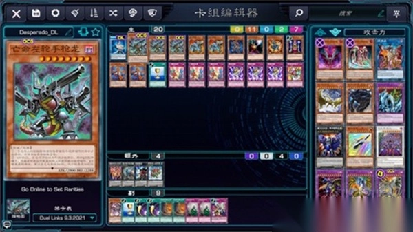 在海量卡池中编辑卡组,还有不同的禁限卡表可以选择,通过文本搜索、在效果上还是名字上均卡,搜索卡片的速度回非常快。