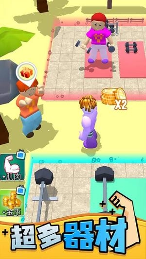 1. 在健身中心开展日常训练,只需轻点器材就能获取资源,进而对设施与角色属性进行升级,亲身感受从弱小走向强大的蜕变历程。
