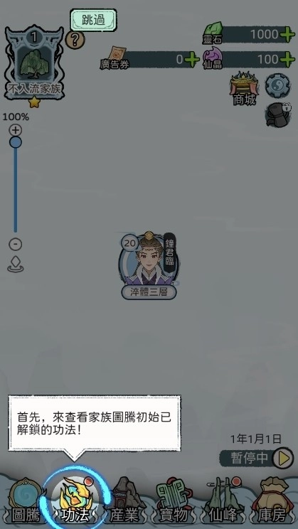 1. 挑选一个修仙家族,从最基础起步,借助修炼来增强家族的实力。