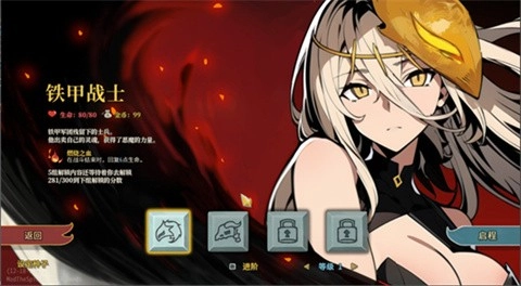 3、当下游戏可供选择的职业共有四个,即铁卫士、寂静猎手、故障机器人与观者。每个职业都配备一套固定的起始套牌,同时还会携带99枚金币,随后便开启冒险之旅。