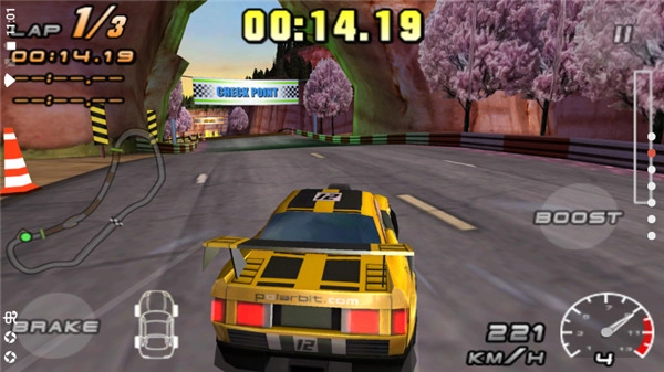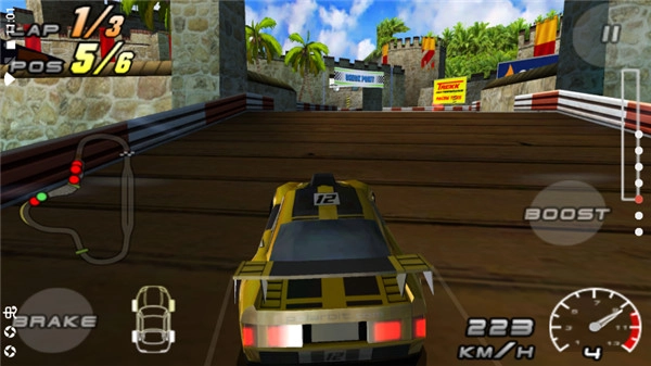 3、游戏采用重力感应的操控方式,比较简单,倾斜设备即可控制赛车的转弯动作。