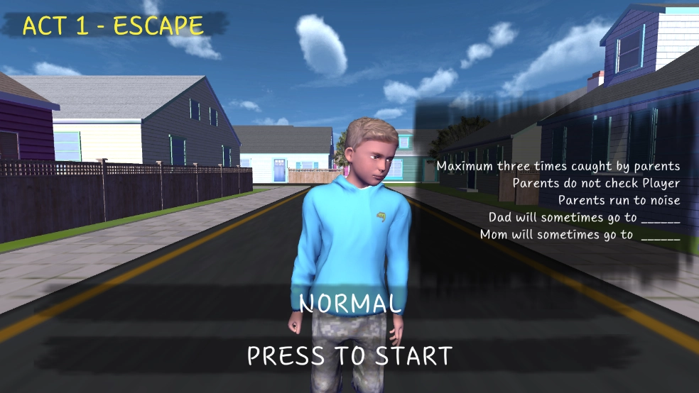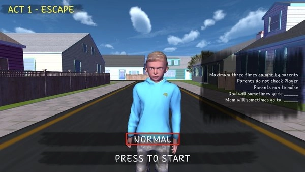 1进入游戏后,你会瞧见站在街道上的这位小学生。点击下方的【NORMAL】,操控该小学生开启惊心动魄的逃脱之旅,努力在恐怖的环境中存活下来。