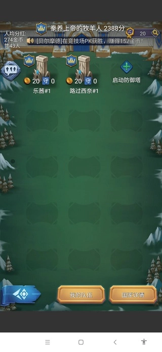 这里展示的是你们国家的参战人数,以及平均到每个人能获得的金币数量。另外,“+”号所标识之处,就是开启防御塔的地点。