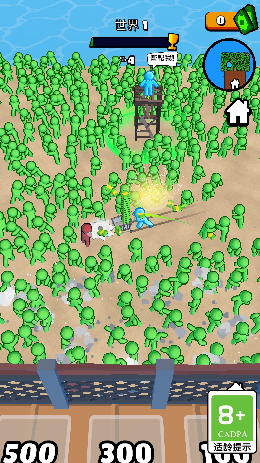 可以拾取僵尸被击败后掉落的金币与各类道具,收集到的金币能够用来提升武器等级、开启新的技能,从而让自身的战斗能力得到增强。
