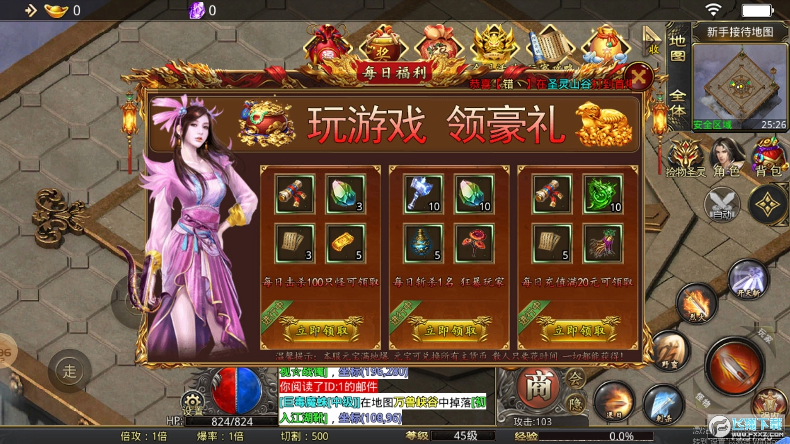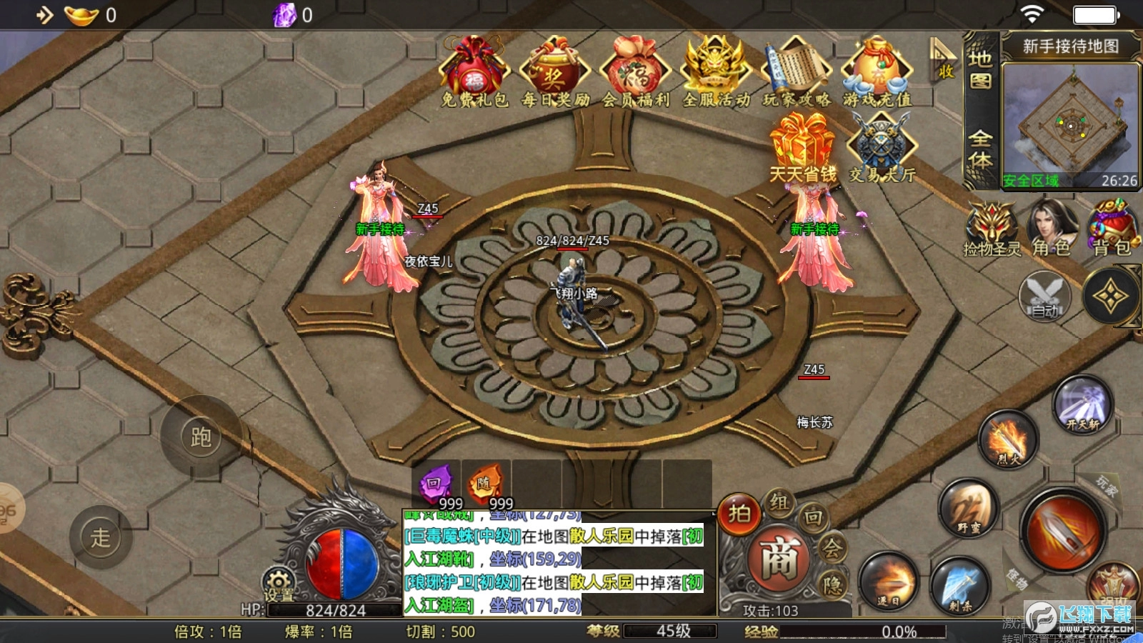 全自由PK规则:除特定安全区与摆摊区外,所有区域PK无限制,尽情体验原汁原味的传奇PK快感,装备爆率超高!