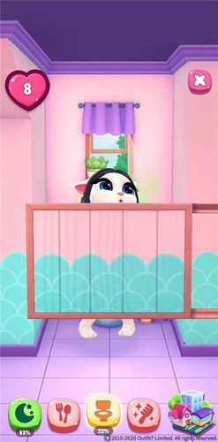 进入游戏后,安吉拉会蹦蹦跳跳地出现在眼前,热情地和我们打招呼。在休息娱乐环节里,我们主要能做这么几件事:要是安吉拉需要睡觉了——也就是对应的图标变成黄色或红色时,我们就可以点击她的小床,再点一下床头灯,这样安吉拉就会进入睡眠状态啦。