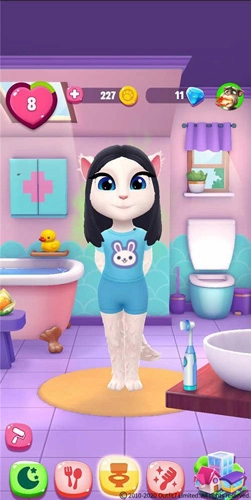 安吉拉每天起床后,最着急的事就是上厕所,所以我们得点击马桶。等安吉拉解决完,就能得到不少飞行代币。之后还可以给她刷牙,这个过程特别解压。