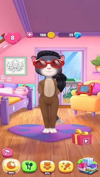 安吉拉也得漂漂亮亮的呀!除了平日里给她梳毛,咱们还能在化妆间里帮她涂口红、画眼影、描眉毛——每种化妆品都有不一样的颜色和款式,随你打造专属于安吉拉的独特风格。只有你没料到的,没有游戏做不到的!在游戏里,你还能帮安吉拉换肤色、换发型,或是挑选日常穿搭,衣服的款式多得很,总能找到你钟爱的那一款。