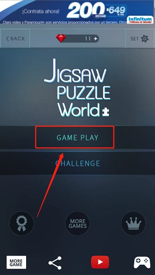 2、挑选游戏关卡,每个关卡上的数字表示该关卡被划分成了多少块拼图。
