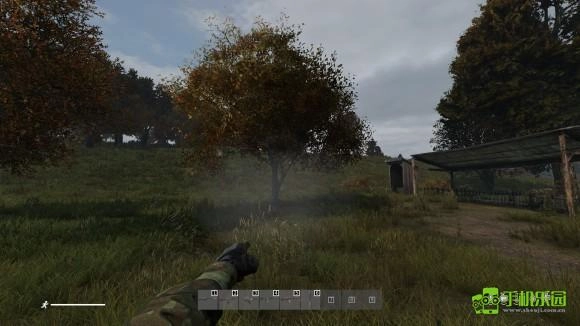 1、游戏开局补充食物的方式,如图所示这种树木就是苹果树,走过去在树冠下仔细找一找有一定几率可以找到落地的水果,比如苹果或者梨之类的,如果运气好你可以捡到几个水果。