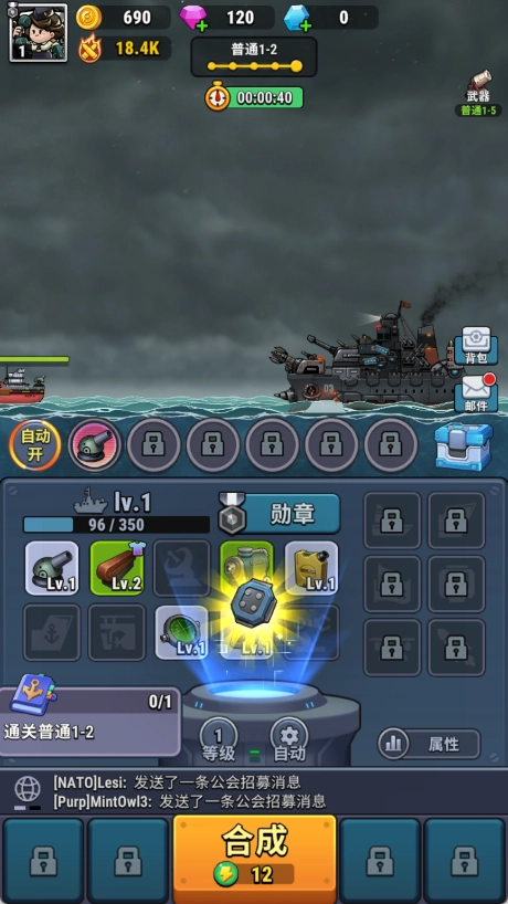 进入游戏界面后,点击【合成】按钮就能得到随机装备。这些装备本身带有属性值,要是合成出了高等级装备,直接给战舰装上就能显著增强战力。