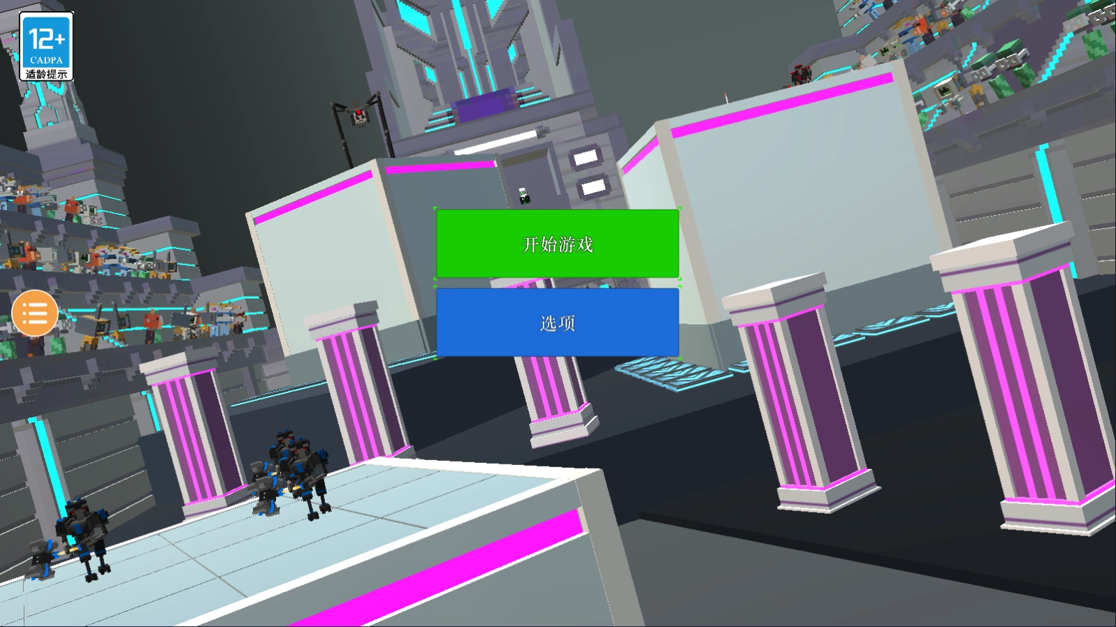 1、首先进入克隆机器人大乱斗游戏后,点击选项可以音效和画面高清度等设置进行调整,然后点击【开始游戏】进行挑战