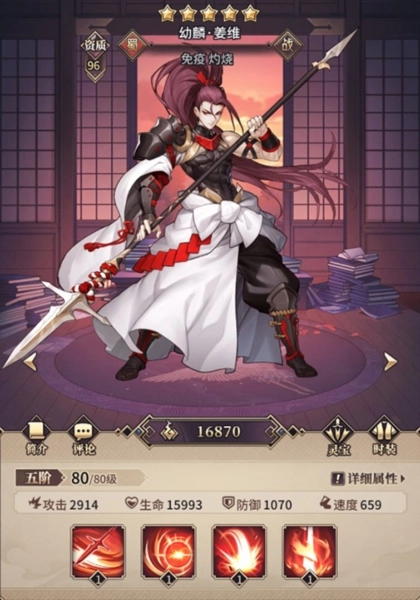 1、一套合理的阵容一般由1个坦克武将、2个辅助武将和3个输出武将构成,通常情况下输出武将是重点培养的核心角色。