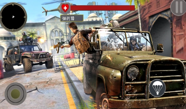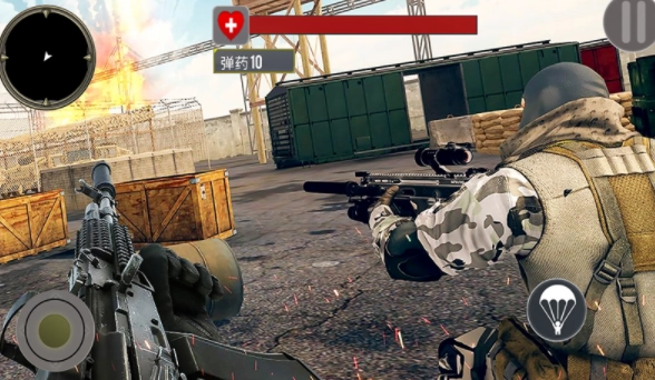 闯关射击战场拟真地图独具代入感,挑选角色通过跳伞加入战场,