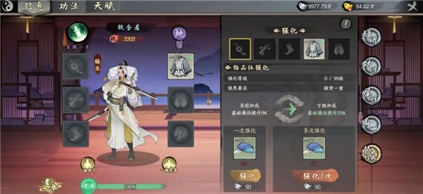 5、弟子配备上心仪的装备后,可进入弟子界面的装备培养系统进行强化提升。