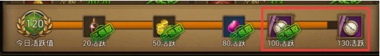 2)每日的活跃奖励,当活跃值达到100和130时,都能领取1张5小时的挂机外挂时间。