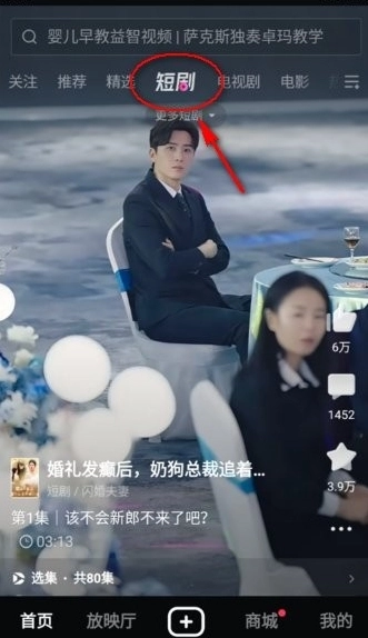 1、西瓜视频头部导航栏有个“短剧”专区,向右滑动就能找到