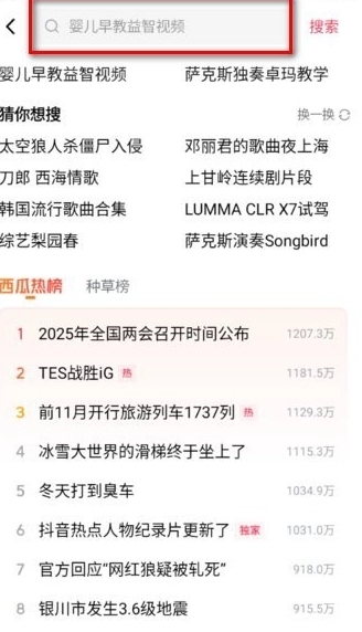 1、打开西瓜视频后,选择要观看的视频,或者直接在头部搜索框进行搜索