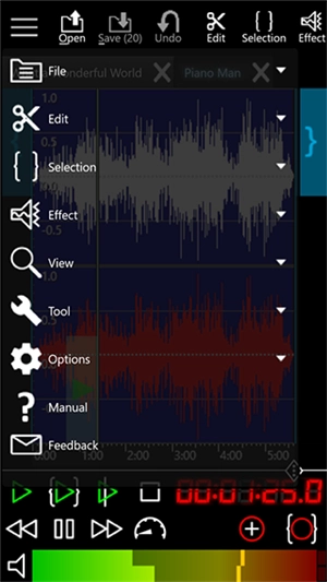 3. 当编辑较长的音乐时,GoldWave会自动利用硬盘;而在编辑较短的音乐时,GoldWave则会在速度更快的内存中进行编辑。