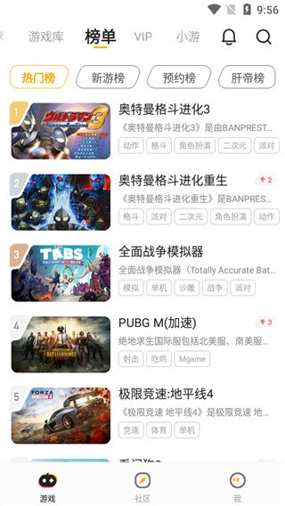 3、榜单中整合了热门榜、新游榜、预约榜、肝帝榜等众多榜单,能够充分满足玩家的需求。