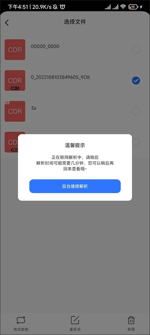 此时,屏幕上会弹出一个解析弹框,待文件下方显示“处理完成”,即表示转换成功。