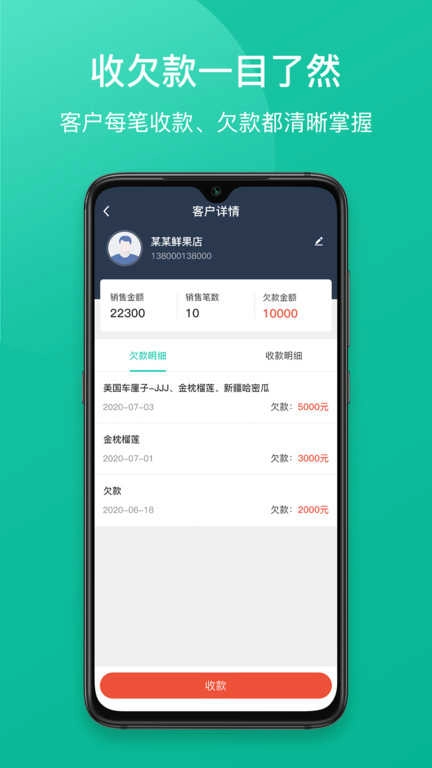 2、收欠款一目了然,不仅欠款明细而且收款明细都能够在此清楚查看