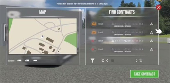 2、在选好合约与工作之后,点击左侧的车辆,便能切换不同的卡车。