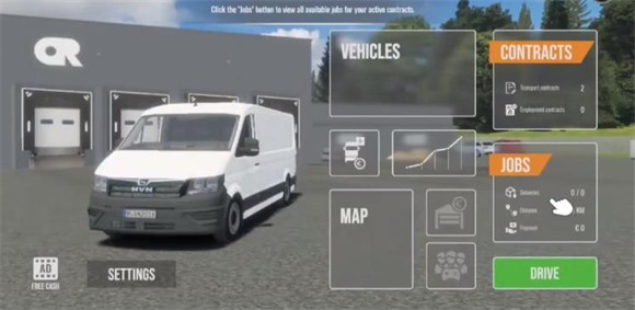 3、挑选好工作与卡车后,点击“drive”开启车辆驾驶。屏幕左侧用于控制车辆转向,右侧则是换挡、油门以及刹车的操作区域。