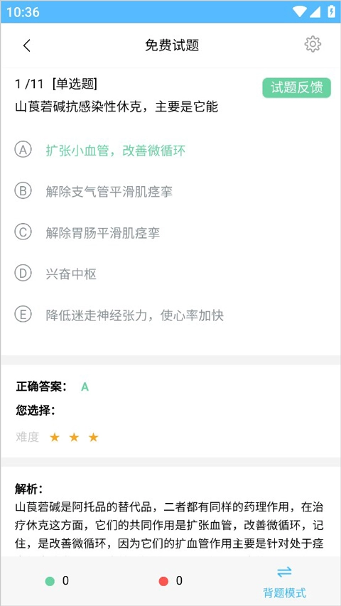 免费题库的试题训练功能十分实用,它不仅支持昼夜模式的切换,还能对字体大小进行编号调整;此外,背题模式和练习模式之间可以一键转换,而背题模式会直接呈现出问题的答案以及详细解析。