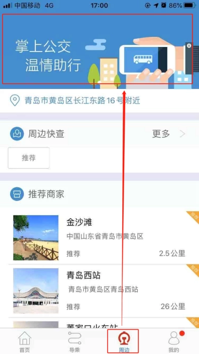 完成公交出行的安装后,打开该应用并进入首页。点击首页的搜索框,即可进入搜索界面。