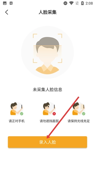 进入【人脸采集】页面,确认采集提示后,点击页面底部的【录入人脸】按钮,即可弹出人脸采集的操作选项弹窗。