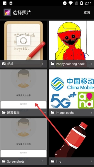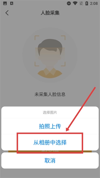 当人脸采集选项弹窗弹出后,点击其中的【从相册中选择】选项,即可进入相册的照片选择界面,为选取人脸照片做好准备。