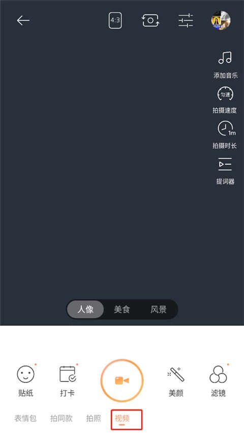 3、接着在右侧的添加音乐、拍摄时长、拍摄速度、提词器这些功能选项里,点击拍摄时长,里面为用户提供了10秒、15秒、1分钟、5分钟、30分钟这几个视频时长的选择项。