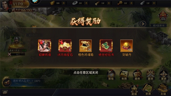 5、每局胜利后将获得大量的奖励道具、等级提升以及稀有武将等;