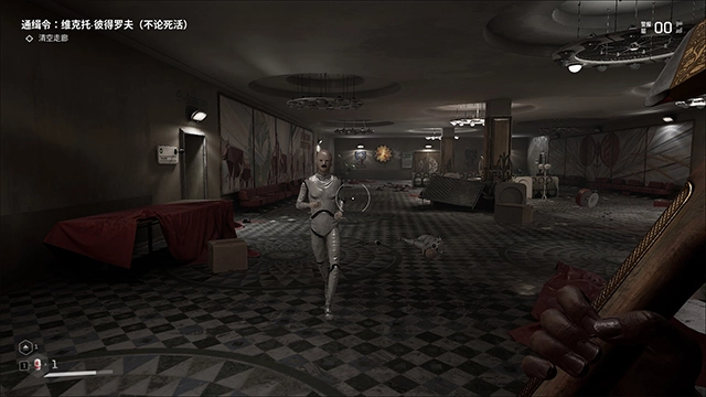 1、打开游戏,穿过大厅,来到连接上下楼的中间层时,就会触发剧情。