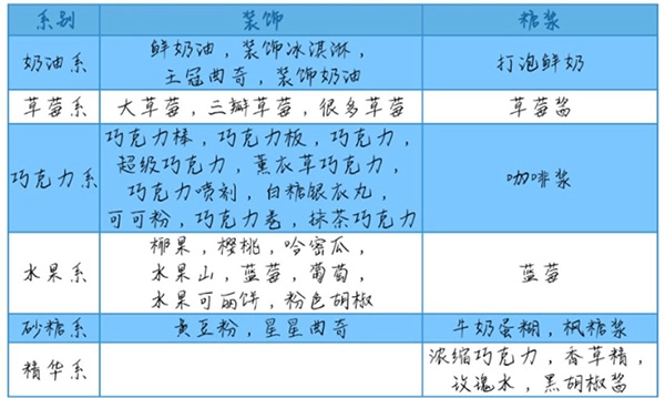 3、后续比赛可采用大盘系列进行制作,在大盘上先以一级基底为基础,制作二级基底,进而做出高级甜点,如此便能获得较高分数。不过,要留意装饰的次数(例如,选用大盘,以果冻作为基底,制作香草冰淇淋,再制作大芭菲)。