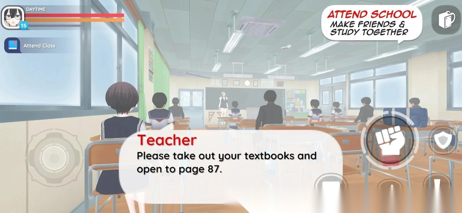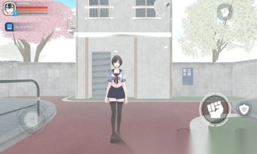 5)到达学校后,屏幕右下角会显示各种动作指令,包括拳击、疾跑、防御等,战斗时可灵活使用。