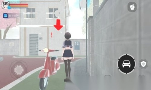 4)游戏中设置了指引,玩家需操控角色依照提示进行移动,例如顺着红色箭头前往学校。