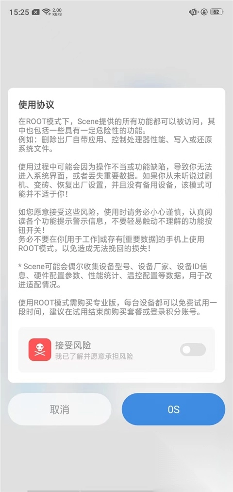 在ROOT模式下,Scene提供的所有功能都可以被访问,其中也包括一些具有一定危险性的功能。例如:删除出厂自带应用、控制处理器性能、写入或还原系统文件。