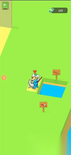 1、玩家进入游戏后,第一步要走到鱼塘边,通过消费获取钓鱼工具,然后进行钓鱼。