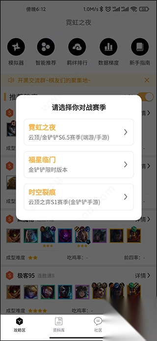 2、其中在攻略区中有模拟器,智能推荐、羁绊排行、数据梯度和新手指南。