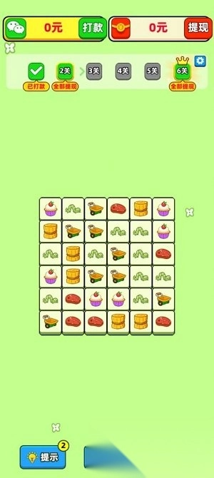 果蔬家园红包版,这是一款主打休闲消除玩法的赚钱类APP小游戏。其玩法和羊了个羊类似,你要把两个图案相同的板块通过连线来消除。当关卡里所有板块都被消除,就算闯关成功,此时就能拿到红包奖励。等红包累积到一定数额,就可以提现啦。而且在关卡中,还设有各种各样的道具助力你顺利通关。