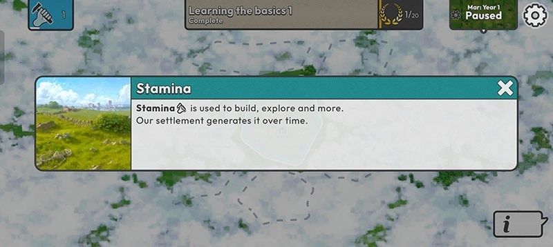 2、体力(stamina)是关键资源,可用于建造、探索等行动,定居点会随着时间的推移逐步恢复体力。