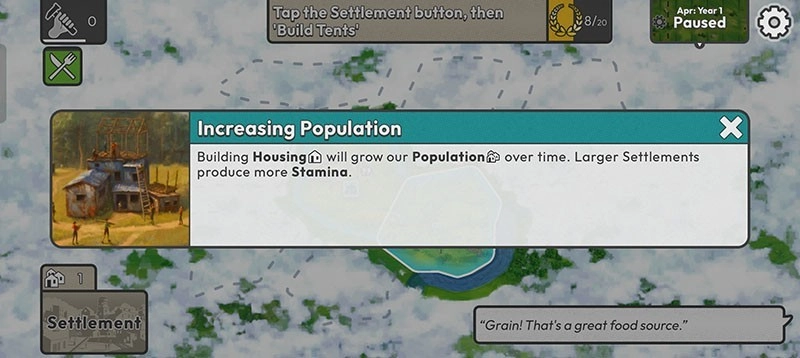 7、随着时间推移,建造更多住房能增加人口数量,人口增长后,定居点的体力恢复速度也会加快,进一步提升生存能力。