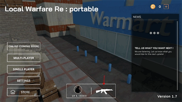 1、通过双击操作打开Local Warfare Re Portable游戏,界面如下所示,接着点击“MULTI - PLAYER”即可进入游戏。