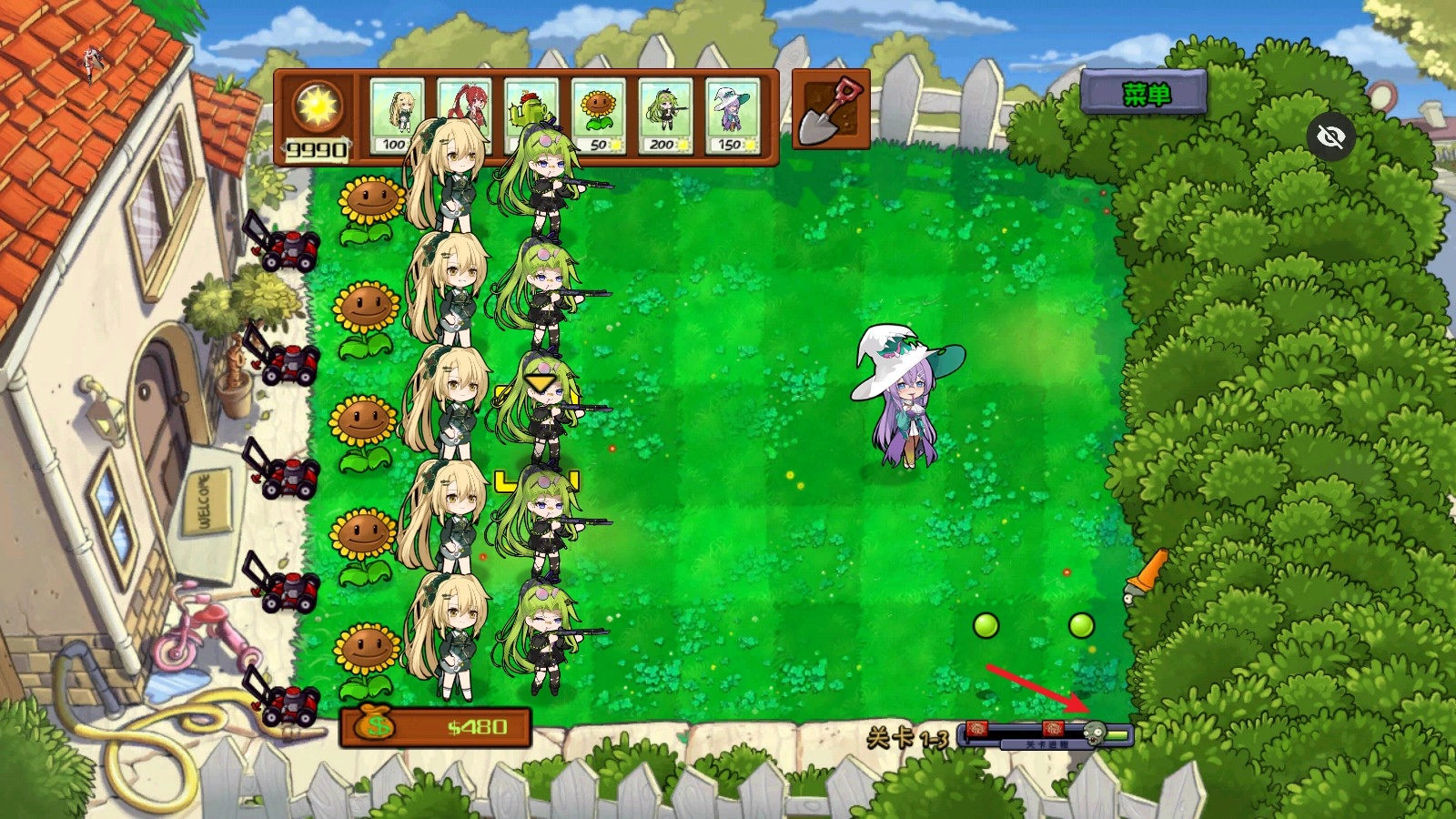4、游戏中的所有植物全部替换为超可爱的萌娘角色,而且所有植物娘都有着独特的技能。