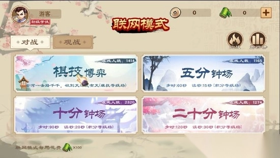 常言道,高手过招,每一招都关乎成败,极具杀伤力。然而,真正的高手不会故步自封、闭门造车,而是会积极与他人切磋交流,如此方能使自身棋艺不断精进。基于此,我们特别设置了联网模式,玩家可借此与来自五湖四海的棋艺高手展开对弈。该联网模式细分为棋技博弈、五分钟场、十分钟场以及二十分钟场。需要注意的是,若想进入联网模式,需消耗100个君子竹。