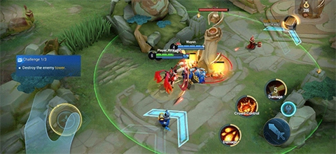 8、5v5模式中共有三条道路,每条道路都设立了三座小防御塔和一座高地防御塔,直到将敌方高地防御塔摧毁后才会获得游戏的胜利
