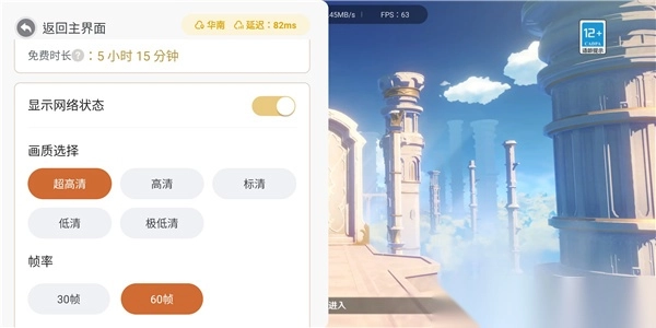 A:云游戏的体验对旅行者的网络有较高的要求,建议旅行者在网络状况良好时体验云游戏,或者尝试在游戏内的悬浮球中手动将画质切换为高清或标清。